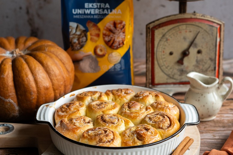 7 g suszonych drożdży bezglutenowych Bezgluten, rozpuść w 250 ml ciepłego mleka z 1 łyżką cukru i pozostaw na 10 minut, aż pojawi się piana. Do miski dodaj 500 g uniwersalnej mieszanki Bezgluten, 80 g cukru, 80 g roztopionego masła, przygotowane drożdże, szczyptę soli oraz dwa jajka. Ciasto wyrabiaj mikserem z hakiem, przykryj ścierką i odstaw na godzinę w ciepłe miejsce do wyrośnięcia. Ciasto rozwałkuj na grubość około 5 mm, podsypując bezglutenową mąką Bezgluten. Utrzyj 80 g miękkiego masła, 2 łyżki cynamonu i 100 g cukru. Masę rozsmaruj na rozwałkowanym cieście. Zwiń w rulon i pokrój na kawałki o grubości 3-4 cm, przykryj do wyrośnięcie na 30 minut. Piecz w 180 C przez 20-25 minut do złotego koloru. Na lukier wymieszaj 100 g cukru pudru, odrobinę soku z cytryny i 2-3 łyżki wody lub mleka. Polej ciepłe cynamoniki lukrem.